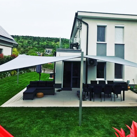 Napvitorláink kivitelezésénél törekszünk arra, hogy a lehető legtartósabb anyagokat használjuk fel ügyelve, hogy az anyag bírja is a rá nehezedő terheléseket. Gondolok itt például a jól méretezett oszlopra, a jól megtervezett rögzítési hosszra vagy éppen fali konzolok felhasználására.